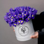 25 фиолетовых ирисов в коробке в Реже