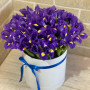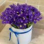 45 фиолетовых ирисов в шляпной коробке в Реже
