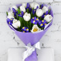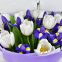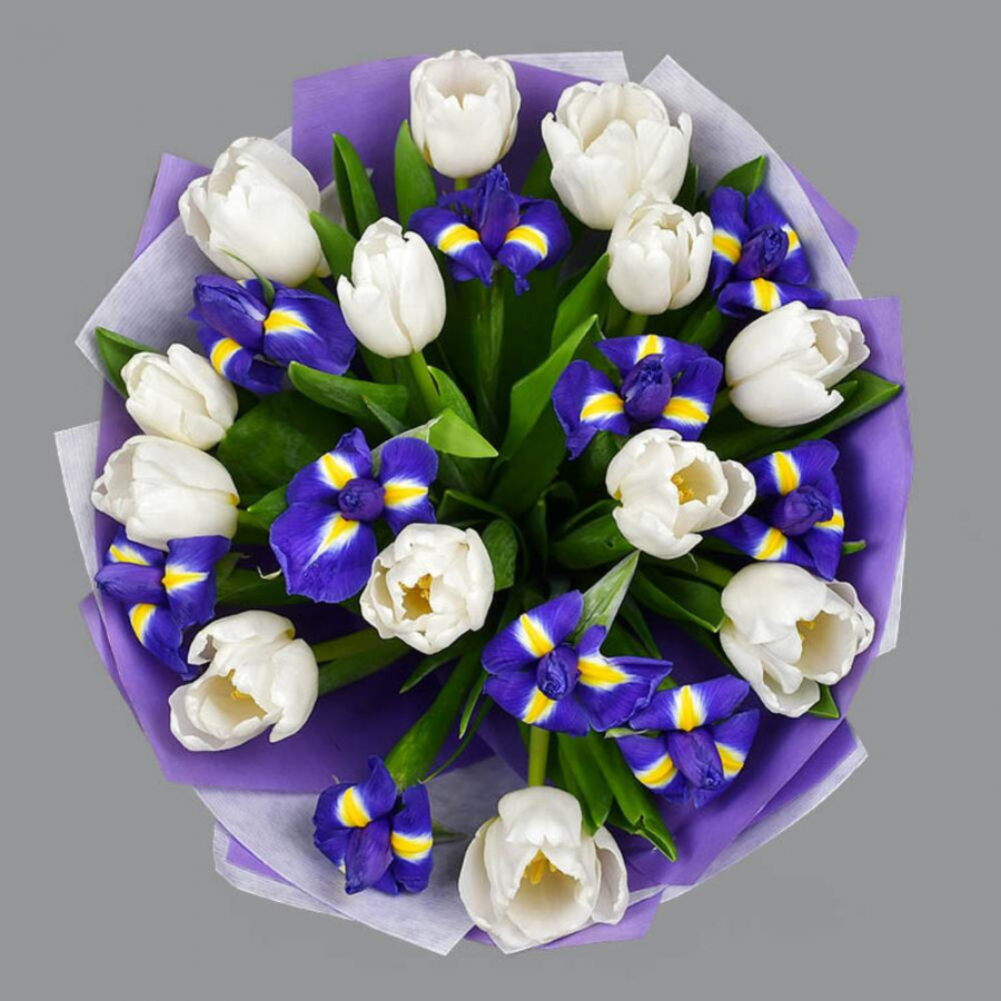 Букет из синих ирисов и белых тюльпанов в Реже