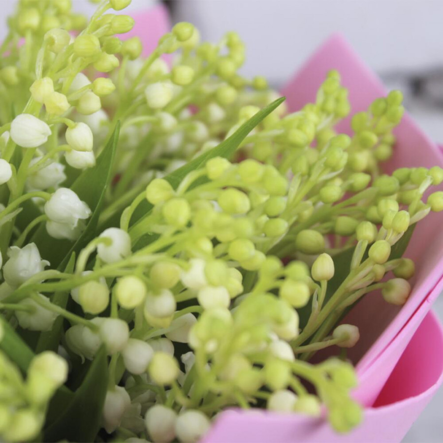 На фото букет из 101 ландыша. В составе: ландыш 101 шт, фоамиран 4 шт, атласная лента 2 шт, . Все цветы свежие и ароматные, букет красиво оформлен и отлично подходит для подарка. Доступна доставка цветов или самовывоз.
