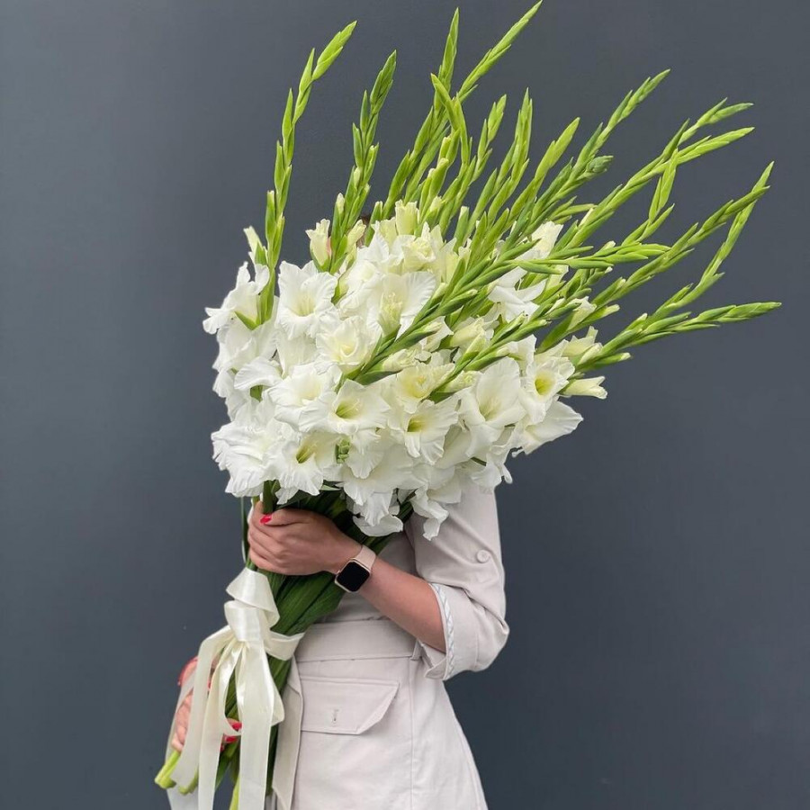 Лента атласная - 1 шт. Гладиолус белый - 19 шт.