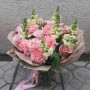 На фото букет из антирринума и гвоздик. В составе: антирринум 7 шт, гвоздика 9 шт, роза 7 шт, салал 4 шт, крафт-бумага 1 шт, . Все цветы свежие и ароматные, букет красиво оформлен и отлично подходит для подарка. Доступна доставка цветов или самовывоз.