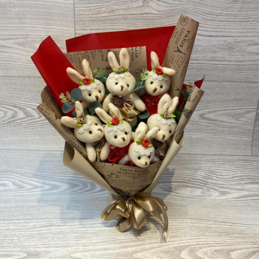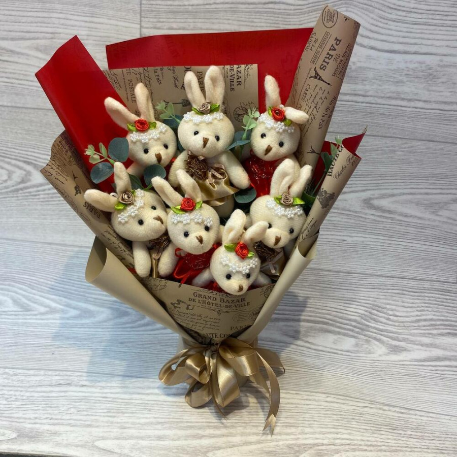 Букет из игрушек «Зайки» 7 шт. в Реже