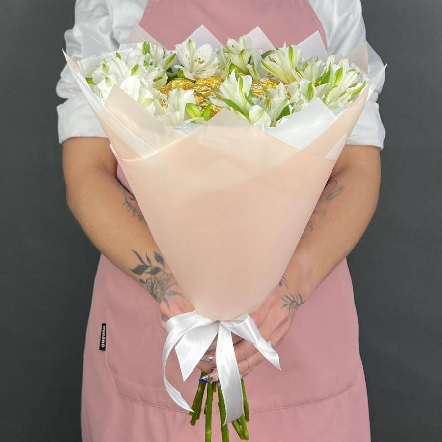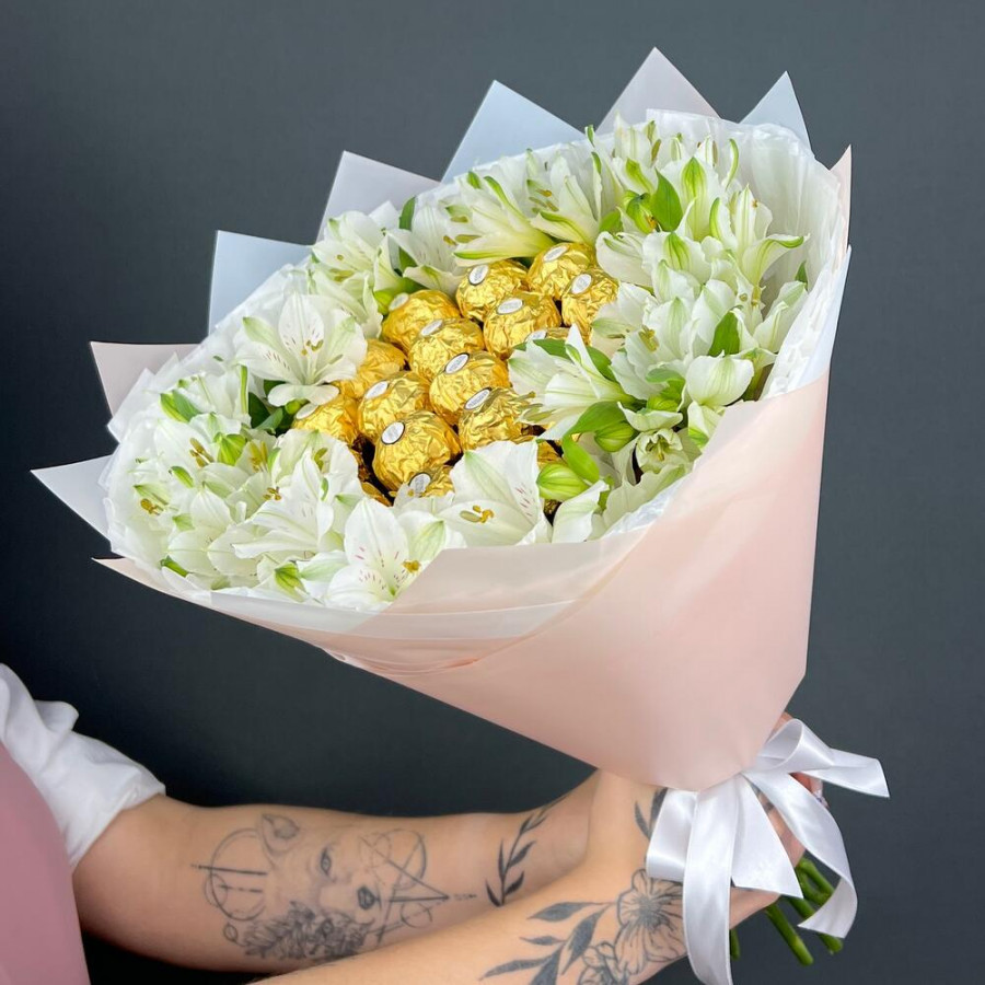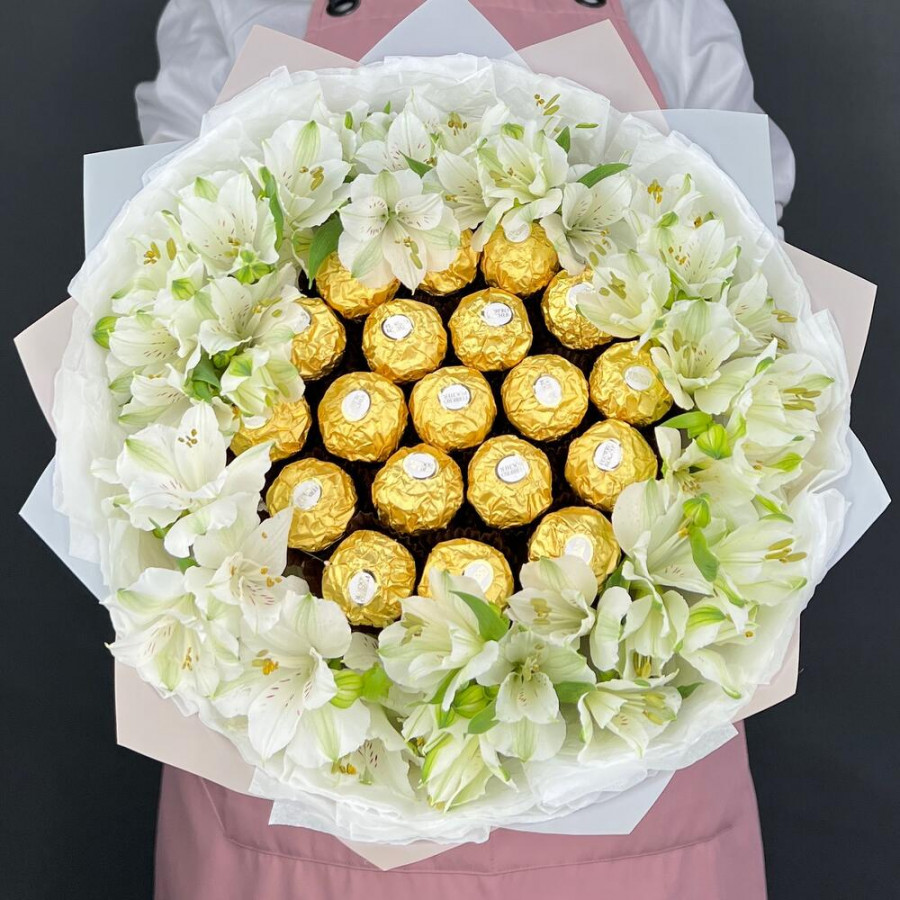 Букет из конфет Ferrero Rocher и и альстромерии в Реже