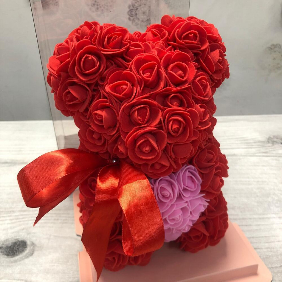 Красный мишка из роз в Реже