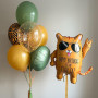 Состав композиции: - фонтан из 4 латексных шариков ( 30 см) , 1 латексный шарик с пенопластом ( 30 см), 2 фольги рванных круга ( 46 см) - фольгированный кот (66 см)
